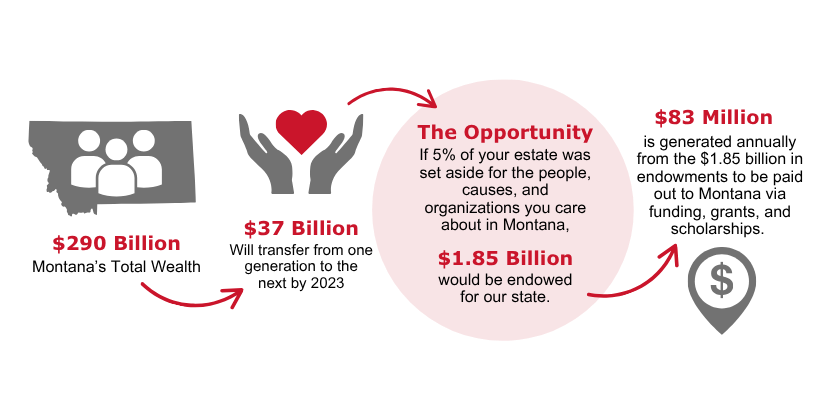 - If 5% of that $37 billion was endowed, $1.85 billion would forever benefit Montana’s charitable organizations, schools, and communities.