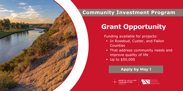 If so, we have a grant opportunity for you! The Community Investment Program (CIP), established at Montana Community Foundation by Grid United, offers up to $50,000 for projects that benefit communities in Rosebud, Custer, and Fallon counties, where Grid United’s Northern Plains Connector will be located.